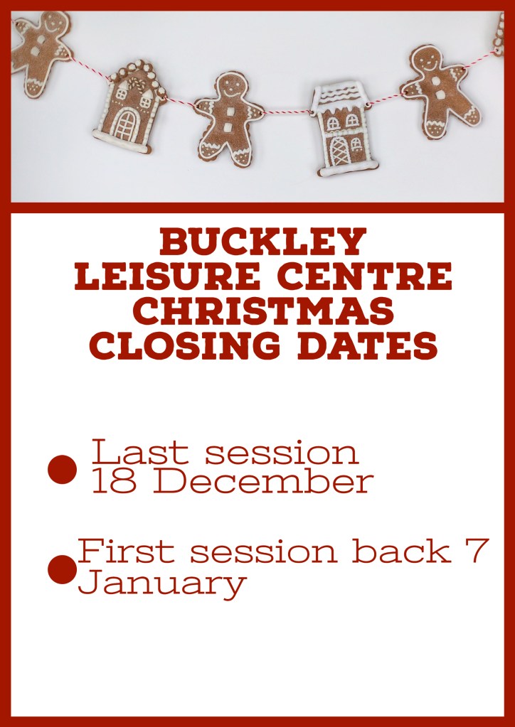 Last session at Buckley Leisure Centre is 18 December and we reopen on 7 January.