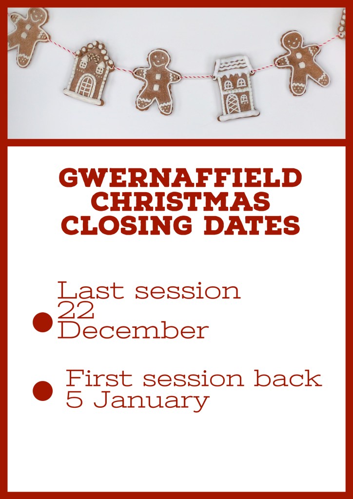 Last session at Gwernaffield gym is 22 December and we reopen on 5 January.
